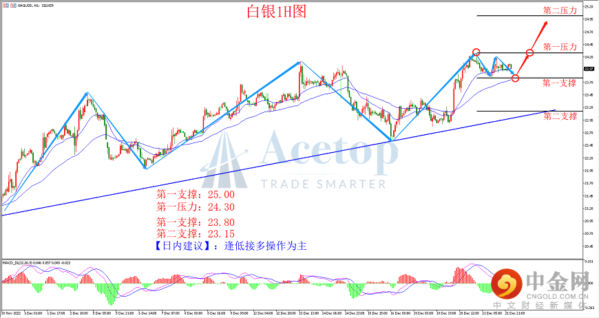 多单:23.80附近尝试轻仓做多,止损23.60,目标24.10、24.30附近。