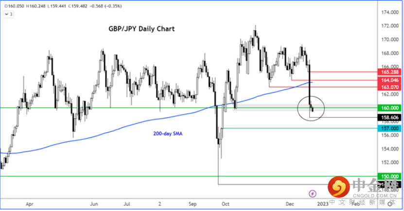 英镑/日元今日来不断下跌,偶有小幅反弹。货币对可在158.60点附近找到支撑点,但如果上升,很可能会在160整数位遭遇关键阻力。截至撰稿时,货币对仍然向下波动,很可能跌至本周低点158.60。如果跌穿这一位置,可能在157.00附近区域找到下一支撑位。不过在日本央行政策出人意料的政策影响下,英镑/日元货币对会继续下跌,值得密切关注。