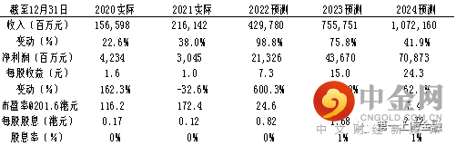 预计23年随公司产能的逐步释放及新车型带来的增量,全年销量有望超过350万辆。国补退坡可能会对公司单车净利润产生影响。我们预计2022-24年公司综合净利润为213.3/436.7/708.7/亿元人民币。我们对公司分部估值给予9673亿港元,调整公司2023年目标价至315.6港元,较目前价格有56.6%上涨空间,买入评级。