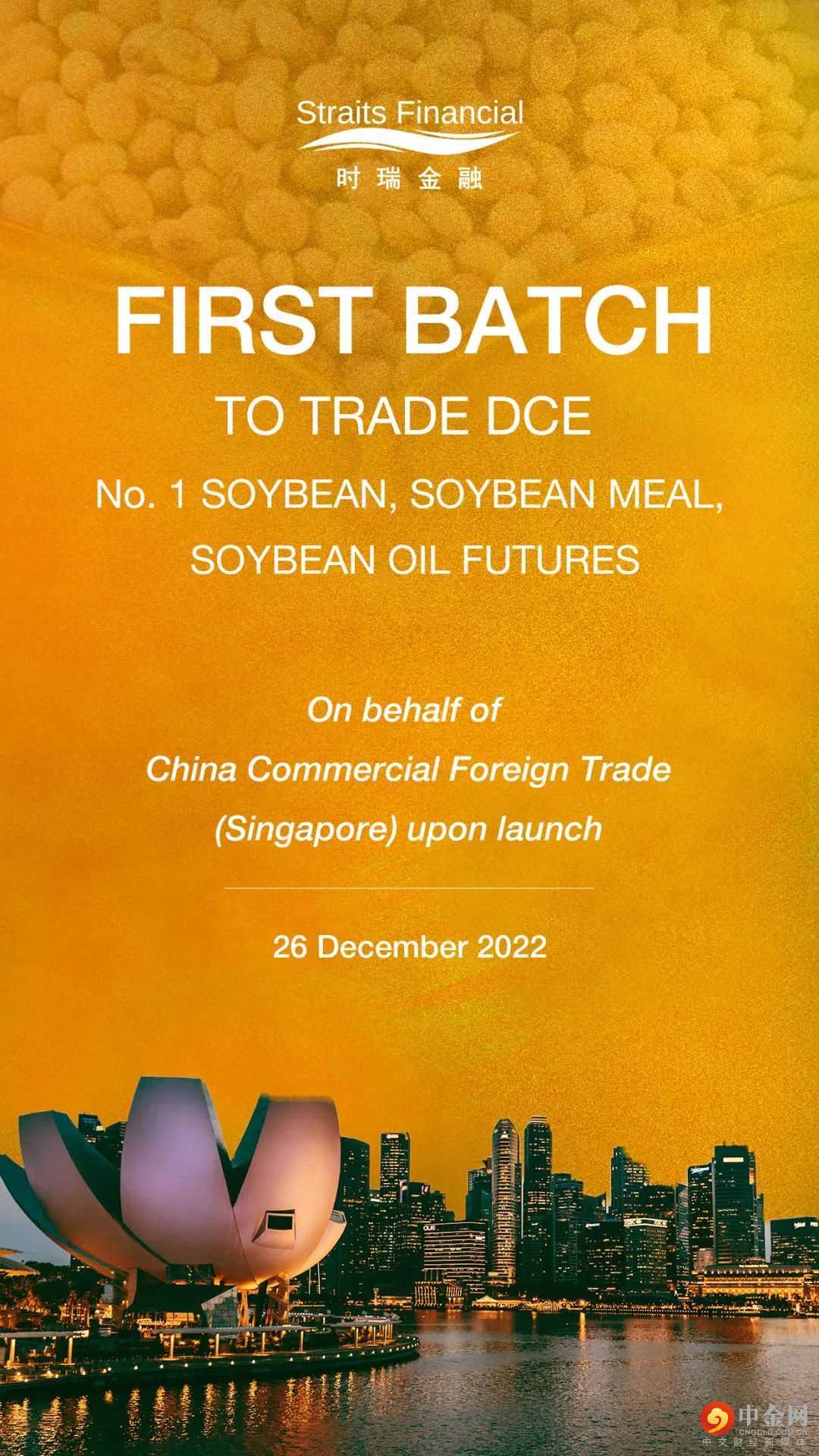 12月26日,大连商品交易所(以下简称“大商所”)黄大豆1号、黄大豆2号、豆粕、豆油期货和期权引入境外交易者参与交易。当日,时瑞金融服务有限公司(以下简称“时瑞金融”)委托新湖期货股份有限公司(以下简称“新湖期货”)助力境外客户中商外贸(新加坡)有限公司参与黄大豆1号期货【a2305】、豆粕期货【m2305】和豆油期货【y2305】合约交易,成为新增国际化期货品种首批成交的境外客户。