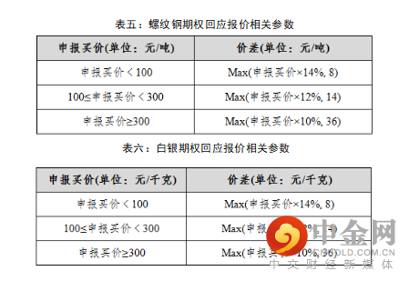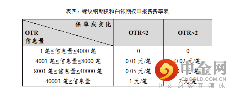 螺纹钢期权和白银期权对客户信息量收取申报费。螺纹钢期权和白银期权申报费费率标准一致,如下表所示。