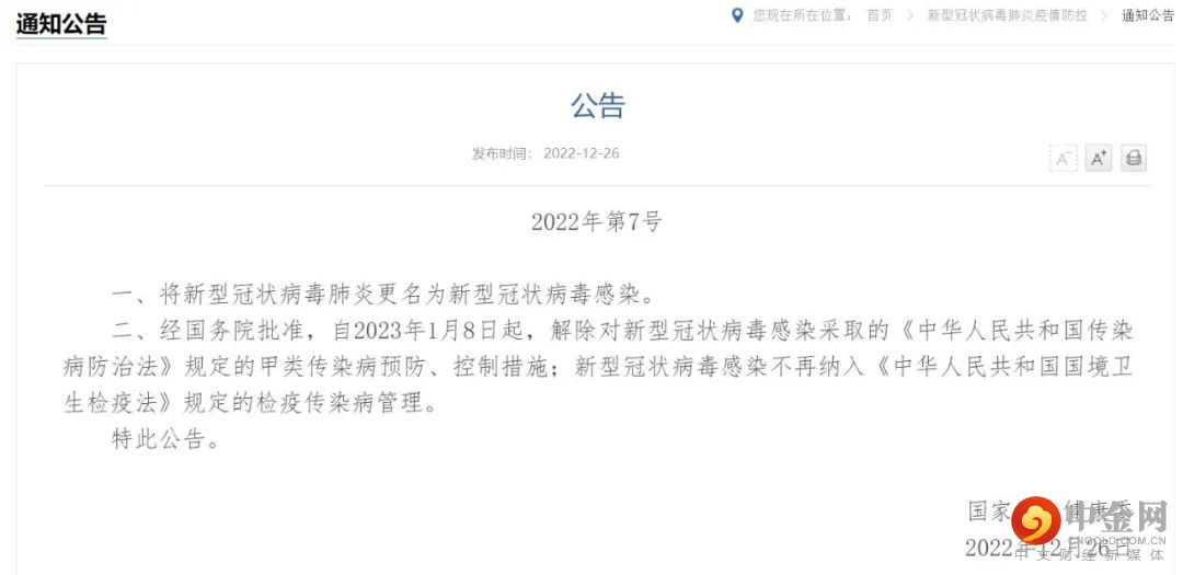 昨天深夜,国家卫健委宣布:新冠肺炎更名为新冠感染,实施“乙类乙管”!