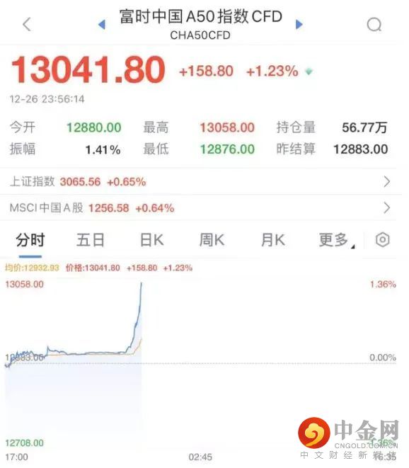 富时中国A50指数期货夜盘直线拉涨。