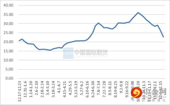 上周屠宰企业合计平均屠宰量在156737头/日,较前一周上涨7.93%。上周恰逢冬至,屠宰量有所提振,周末有平安夜圣诞节,集中餐饮增多,白条走货情况转好。元旦临近,预计宰量还会有所增长。