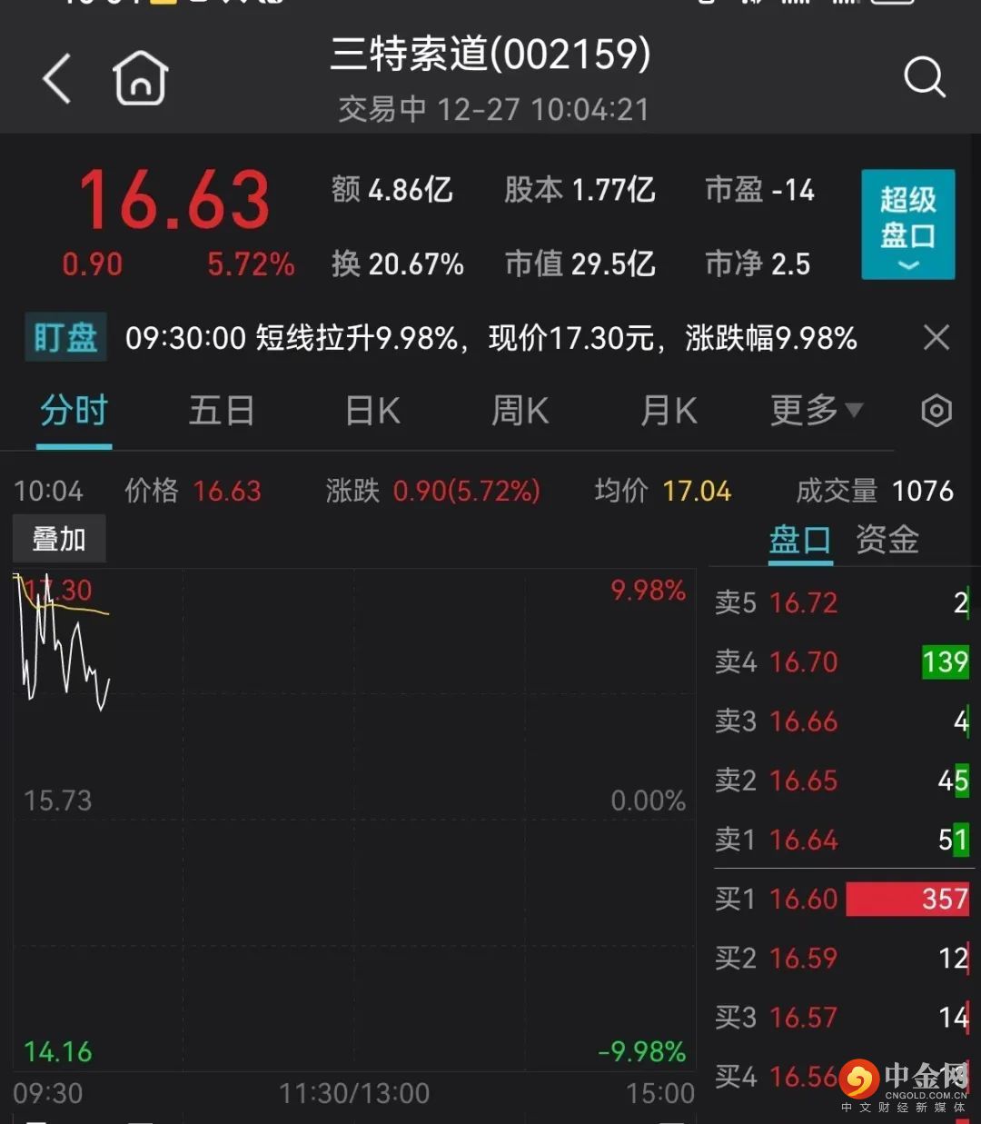 三特索道集合竞价时封板,开盘后迅速炸板,目前在高位震荡。