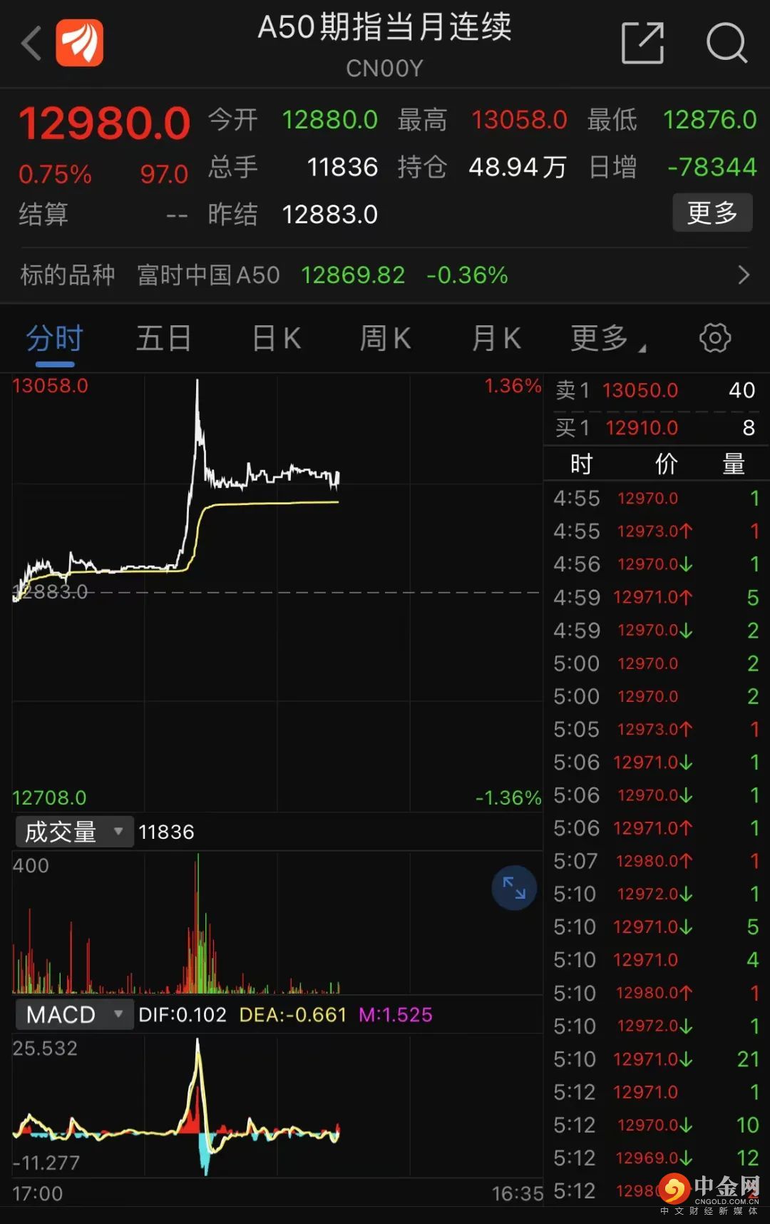 26日深夜,A50指数快速拉升,盘中涨超1%。