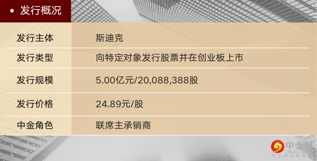 12月28日,江苏斯迪克新材料科技股份有限公司(“斯迪克”、“公司”,股票代码“300806.SZ”)向特定对象发行股票并在创业板上市项目成功完成,发行规模5亿元,中金担任本项目的联席主承销商。