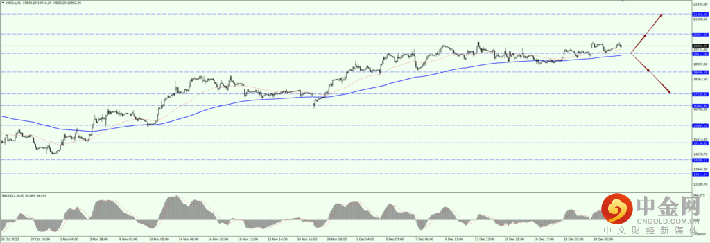如果 HK50 运行于 19517 一线下方,届时关注 18606 和 17535 两个位置的支撑力度。
