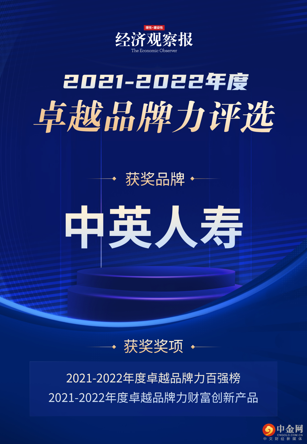卓越品牌力百强榜聚焦盈利能力、信息披露、战略规划、经营增长、社会影响力、品牌美誉度等维度,由《经济观察报》经过评估调研、行业专家评审、数据统计等多维度进行评定。卓越品牌力单项奖则是在品牌力百强榜的基础上,优中择优。中英人寿入选百强榜,并荣获“年度卓越品牌力财富创新产品”单项奖,充分反映出市场及行业专家对公司综合实力、品牌影响力、产品创新、业界口碑、社会贡献等多方面的认可。