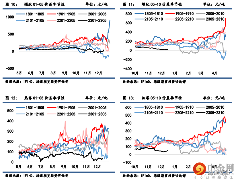 螺纹 01-05 月间价差从-6 微升至 35 元/吨,05-10 月间价差从 16 微增至 20 元/吨;热卷 01-05