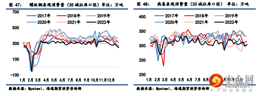 螺纹钢测算周度表观消费量环比减少 19.53 万吨至 246.68 万吨,表需同比增速增至-7.86%。热