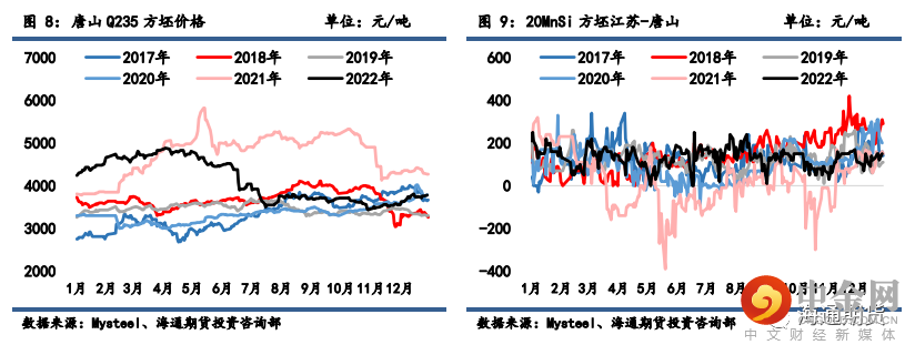 现弱于铁矿石价格,废钢铁水成本价差从废钢贴水铁水成本 255 元/吨缩小至 224 元/吨左右。华东地
