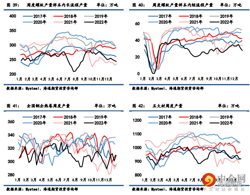 五大材品种产量环比微降,其中螺纹钢长短流程产量均继续回落,