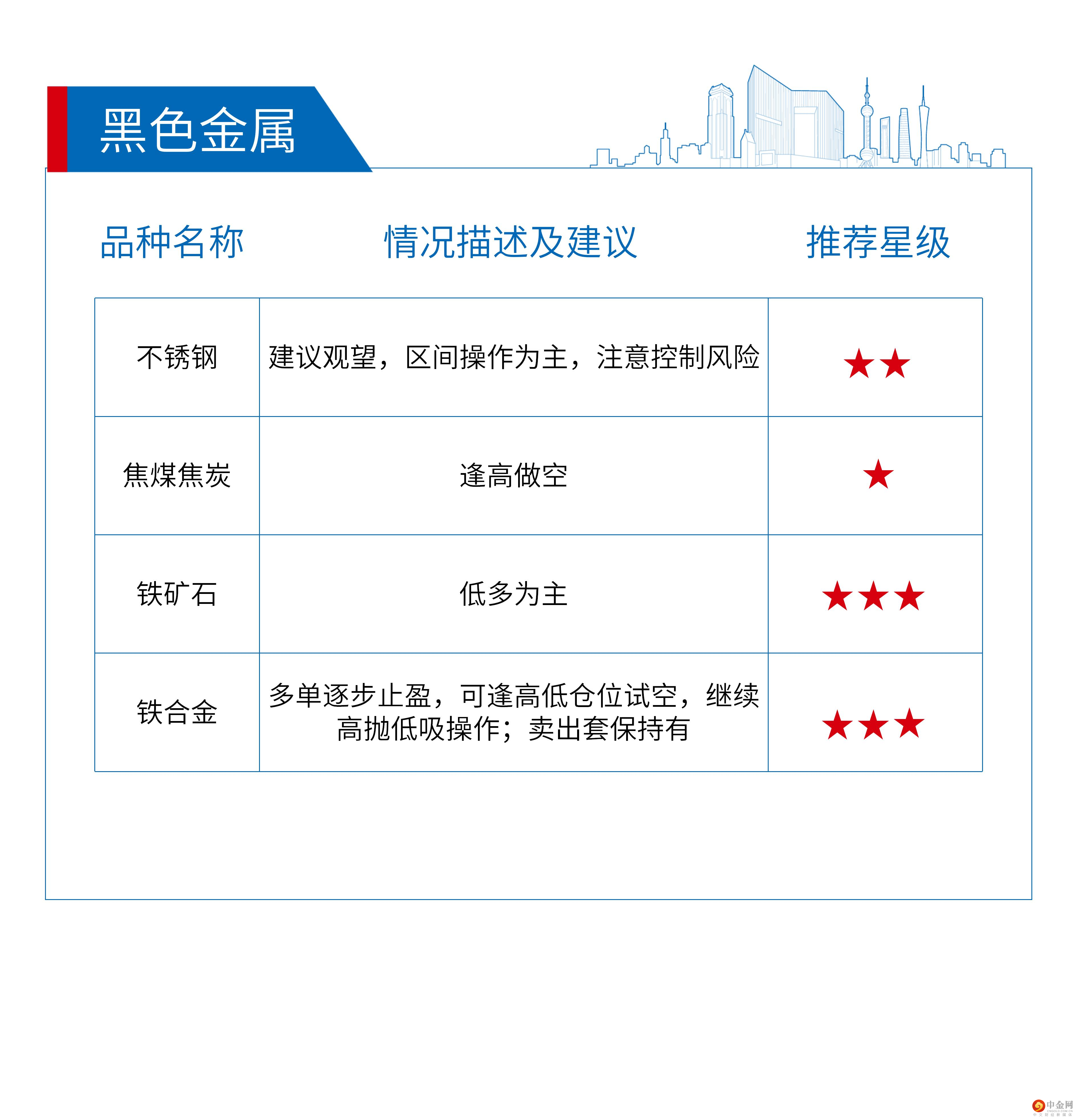 推荐星级说明