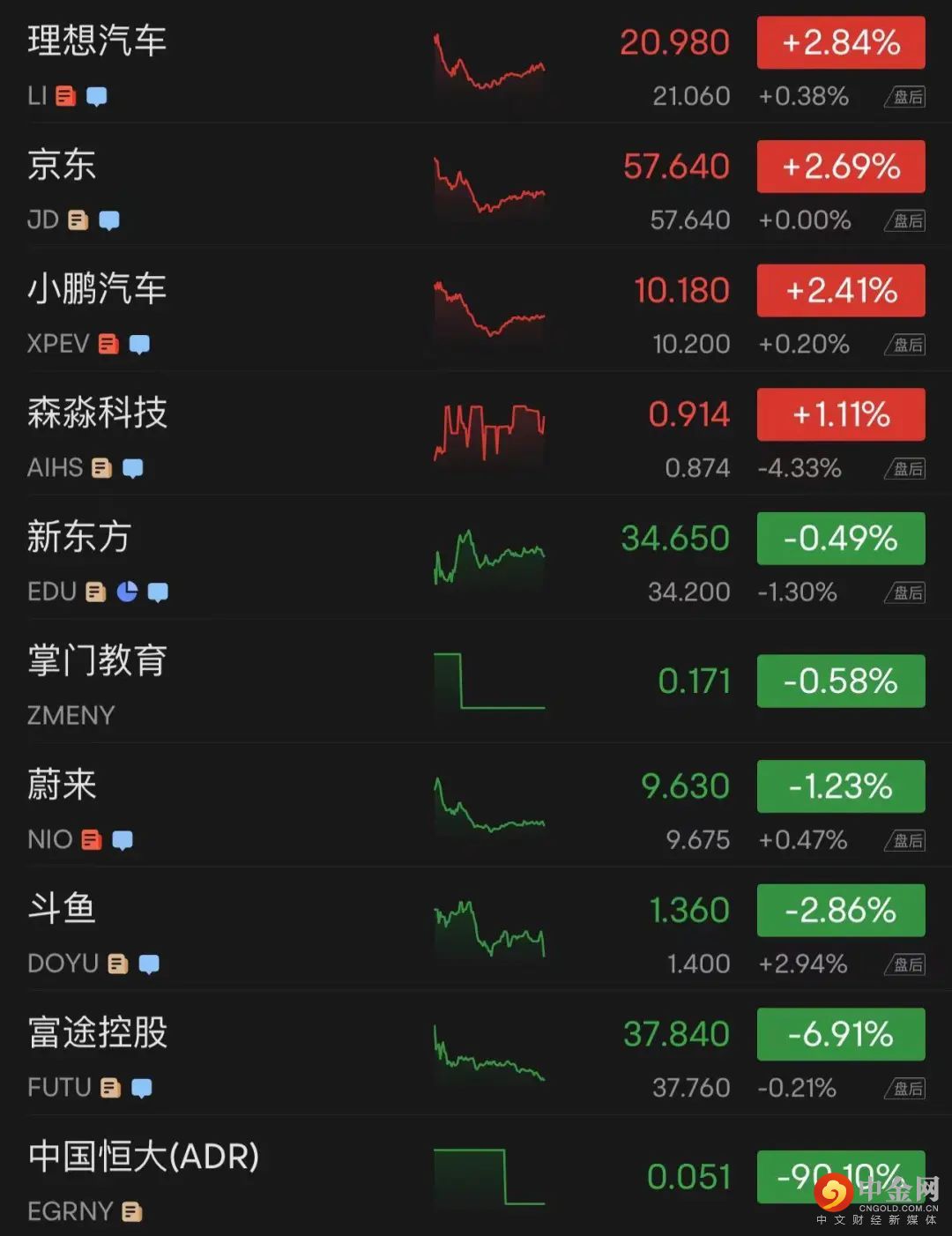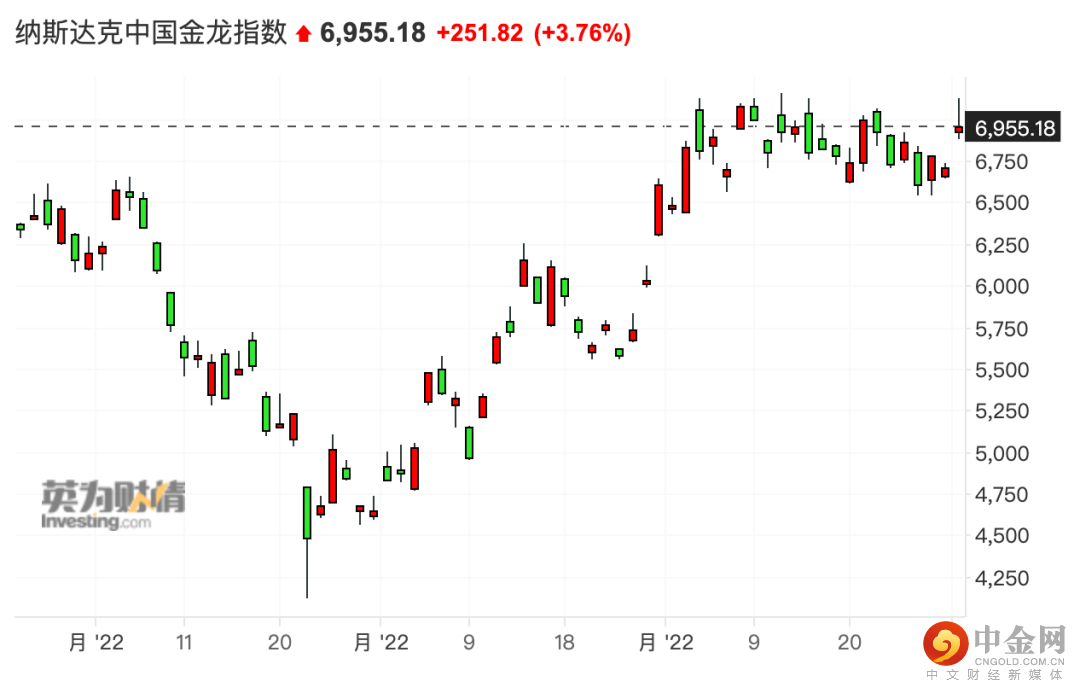 纳斯达克100四只成份股中,京东涨近3%,百度涨超4%,拼多多涨近4%,网易涨超5%。