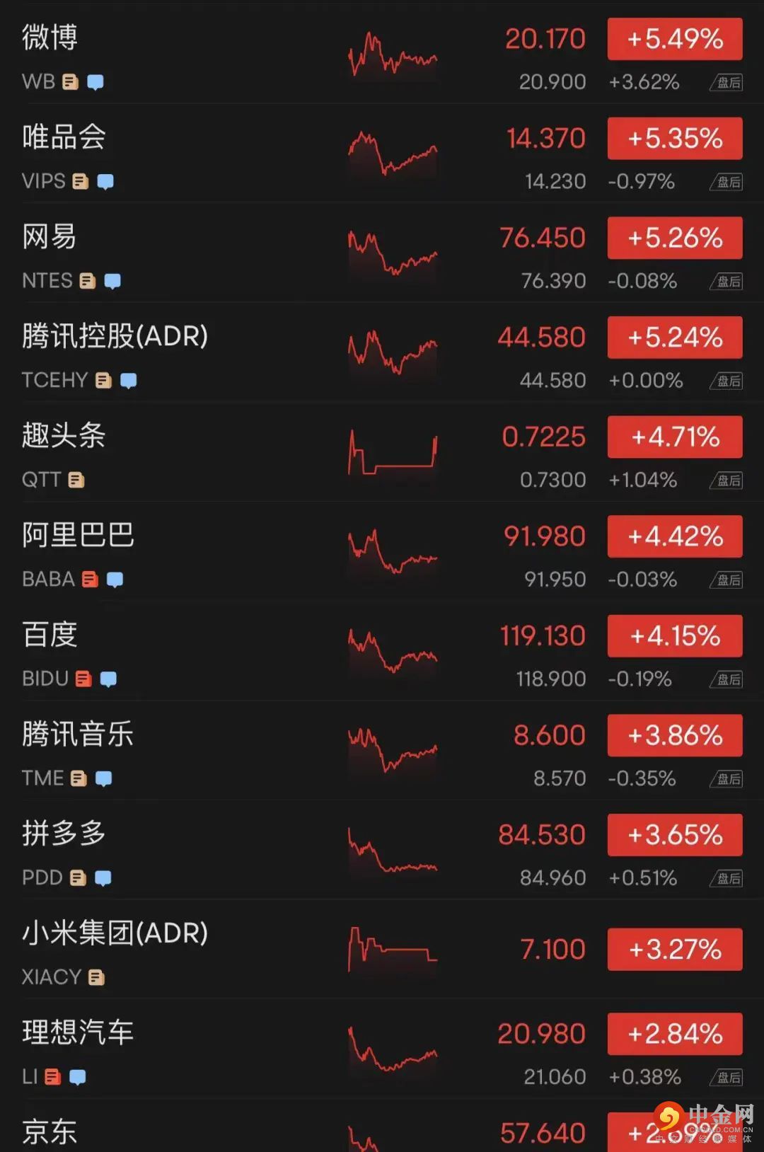 热门中概股普涨