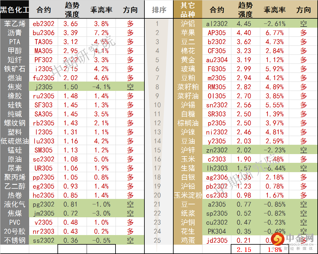 中期商品趋势榜 | 2023开门红,能化农产品多头强(0103)