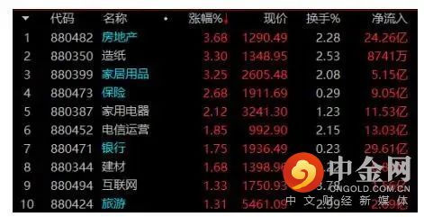盘面上,房地产及产业链相关板块集体走强,新城控股、中南建设等超10股涨停。数字经济概念股继续活跃,国资云方向领涨,南天信息、深桑达A、甘咨询等涨停。大金融股集体反弹带动上证50指数走强,平安银行、宁波银行、新华保险、中国太保等涨超3%。下跌方面,医药股陷入调整,众生药业接近跌停。光伏储能等赛道股午后走弱,派能科技、锦浪科技跌超5%。