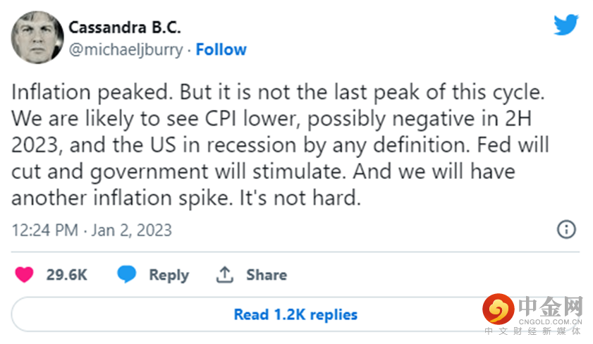 当地时间1月3日,华尔街传奇人物、电影《大空头》原型、Scion资产管理公司创始人Michael Burry发表了悲观预测,美国衰退已经成定局,而美联储将选择降息来刺激经济,从导致通胀再度飙升。