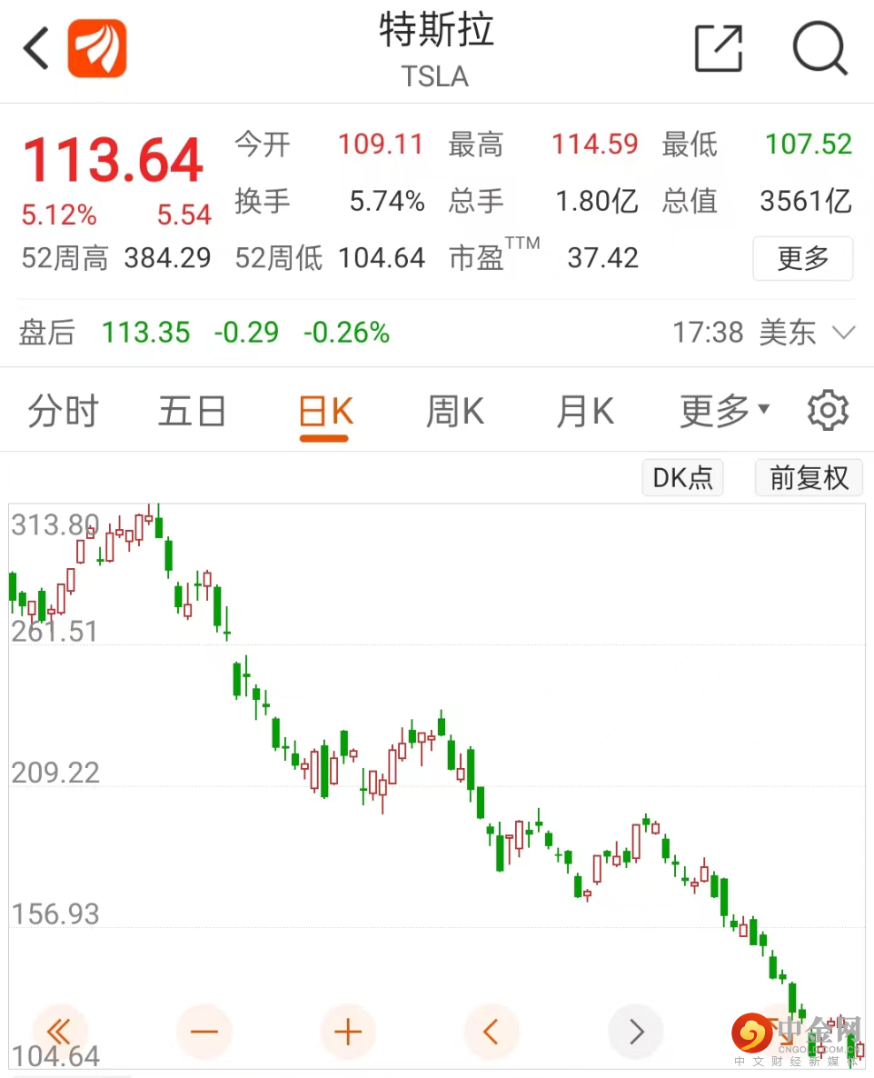 凯茜·伍德大举抄底次日,特斯拉迎来了超跌反弹,特斯拉股价大涨超5%,总市值回升至3588亿美元。