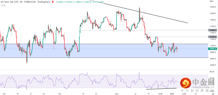 纳指自10月以来已经三次触及10600的底部区域,但都没有走出更低的低点。如果把时间轴拉长到2000年开始超级牛市周期,目前纳指正处在38.2%的回撤位。在进一步下跌之前,若能守住当前支撑区域则有机会测试上方11280、11480和通道上轨。若跌破10600则将陷入更深的熊市当中。