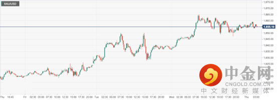黄金兑美元周三收盘小幅上升后,今日开盘涨至1855.10附近,因美国ISM制造业数据萎缩,使得金价获得上行支撑。