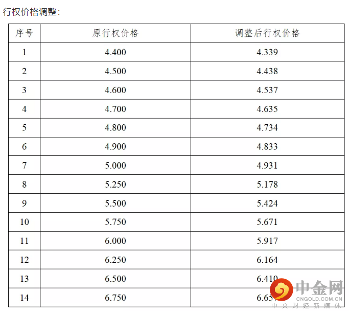 (3)行权价格、合约单位进行如下调整: