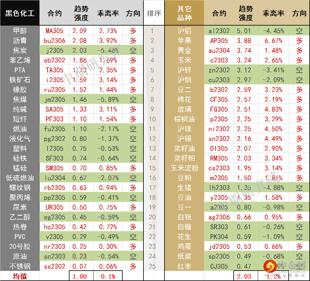 中期商品趋势榜 | 沪铝空头动能增强(0104)