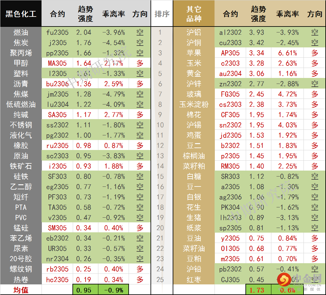中期商品趋势榜 | 沪铜空头动能增强(0105)