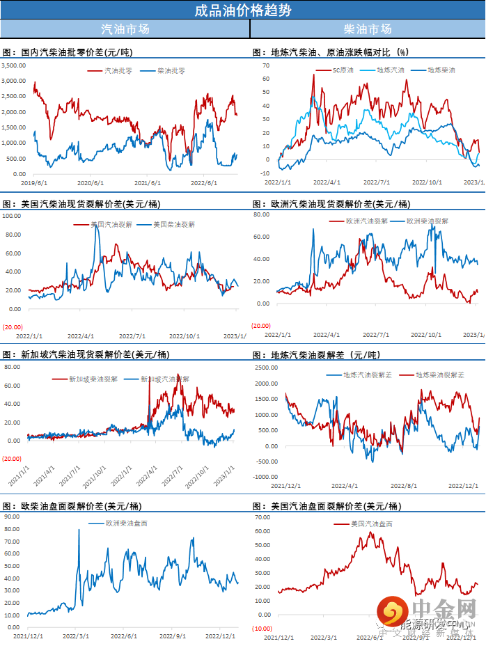 不过周四油价还是迎来了喘息窗口,尤其是EIA数据利好有限情况下油价仍有反弹表现。这样的反弹力度并不足以扭转局面,但有助于市场情绪回稳,油价急跌有情绪化特征,开年既有这样的表现或许预示着2023年的原油市场仍不平静。国内疫情峰值过后国内重点城市社会活力恢复还是比较块,中国需求的重新启动还是非常值得期待。我们维持油价持续暴跌的概率相对较小的判断,油价有较大概率进入一个低位区间震荡阶段,后续等待需求层面的进一步明朗,注意节奏把握。