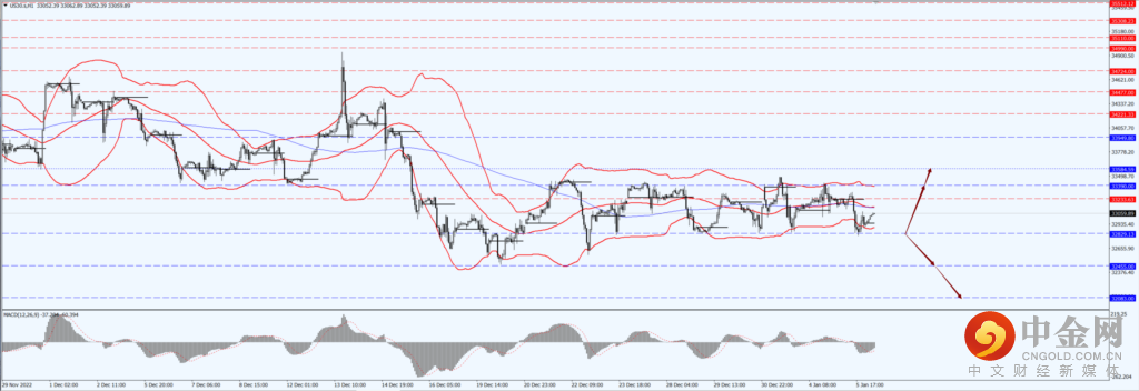 如果道指稳定运行于 32829 一线上方,届时关注 33390 和 33584 两个位置的压制力度;