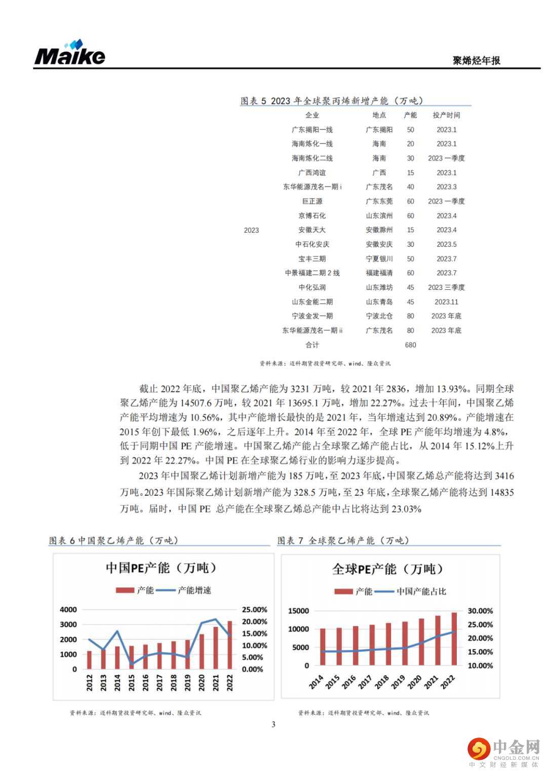 【迈科期货2023聚烯烃年报】产能扩张,需求下降,产业链利润偏薄