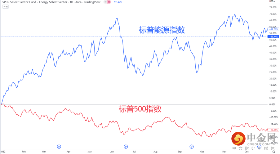 2022年标普500能源指数 vs 标普500