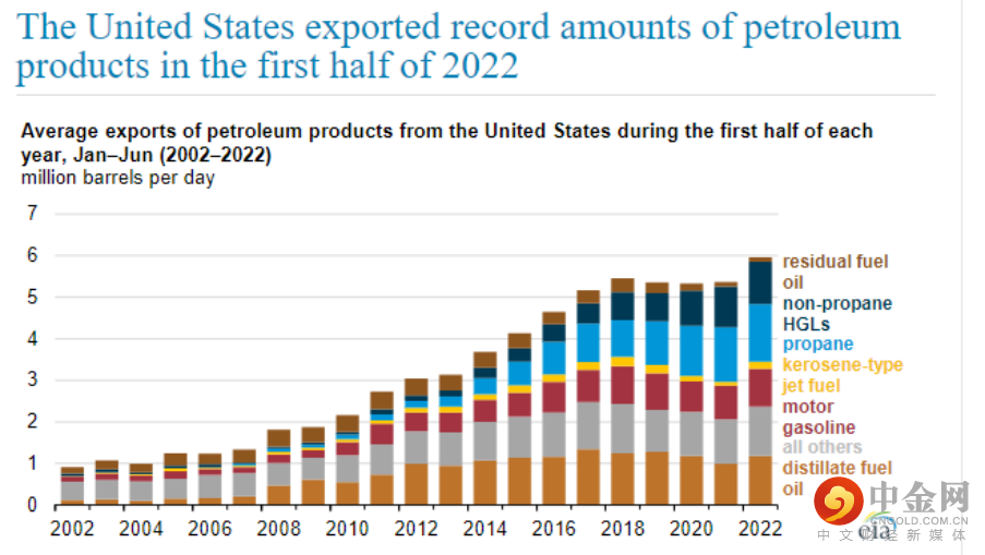 美国石油产品上半年出口量(2002-2022)