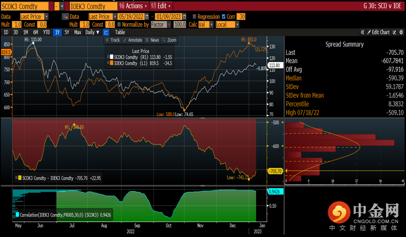 DCE大商所铁矿09月/22年 - SGX新交所铁矿09月/22年