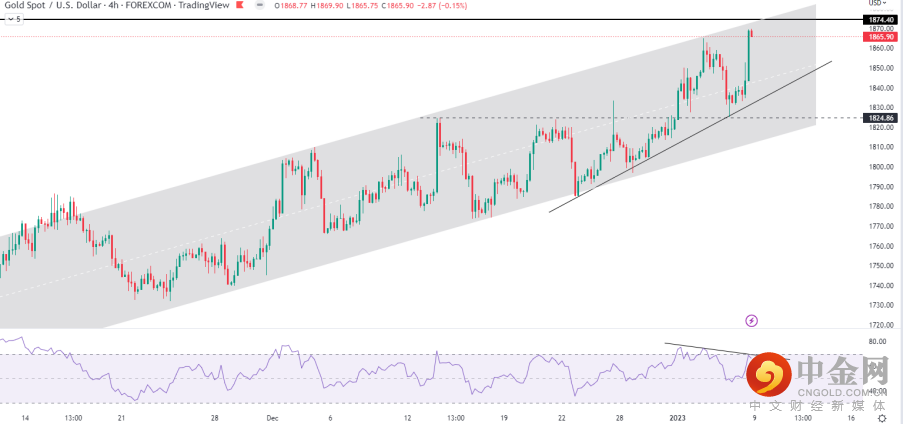本周四美国CPI数据出炉将是对金价的一个重大考验。若通胀持续回落,金价甚至有机会冲击1900美元大关。