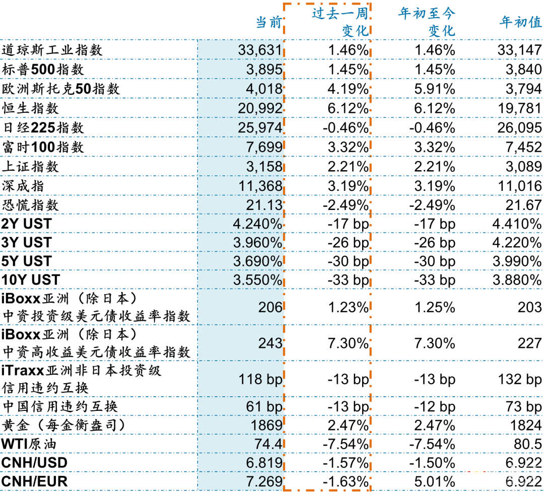 上周公布的美联储12月会议纪要传递鹰派信号,美联储官员继续强调将会坚定地致力于抗击通胀,并预计在取得更多进展之前利率将继续维持在高位,且没有流露2023年要降息的想法。就业方面,美国12月非农就业人口新增22.3万人,新增就业降至2020年12月以来最低,12月失业率回落至3.5%,前值为3.7%。同时美国12月平均时薪增速显著下降,环比仅增长0.3%,为近十个月以来最低增速。尽管新增就业人数依旧强劲,但时薪增速下降表明工资通胀有所放缓。上周公布上述数据后,美股上涨、美债收益率下跌,美联储加息预期小幅降温