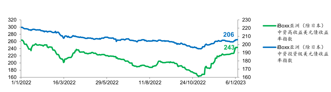 iBoxx亚洲(除日本)中资美元债收益率指数过往一年的走势