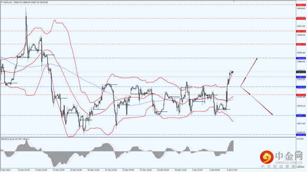 如果道指稳定运行于 33390 一线下方,届时关注 33233 和 32829 两个位置的支撑力度。