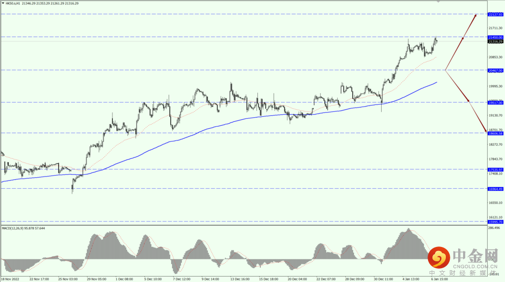 如果 HK50 能够稳定运行于 20467 一线上方,届时关注 21450 和 22127 两个位置的压制力度;