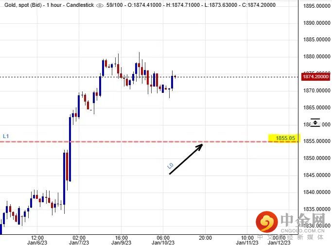 美国其中一个经济研究组织,美国经济咨商会 (Conference Board)在昨日出台了美国去年12月的就业趋势指数,由11月份修正后的117.14数值下跌至116.31数值水平,这是美国就业趋势录得连续第三个月下跌,反映出疫情后的美国就业增长经已见顶,并且预示着有机会进一步放缓的迹象,要是市场人士对美国就业市场已经由高位向下发展的话,对联储局今年只会有轻微的加息步伐存有憧憬,买入黄金的风险胃纳应该会升温,对金价跌穿$1,860美元水平便能吸引趁低吸纳黄金的买盘进场有其帮助。