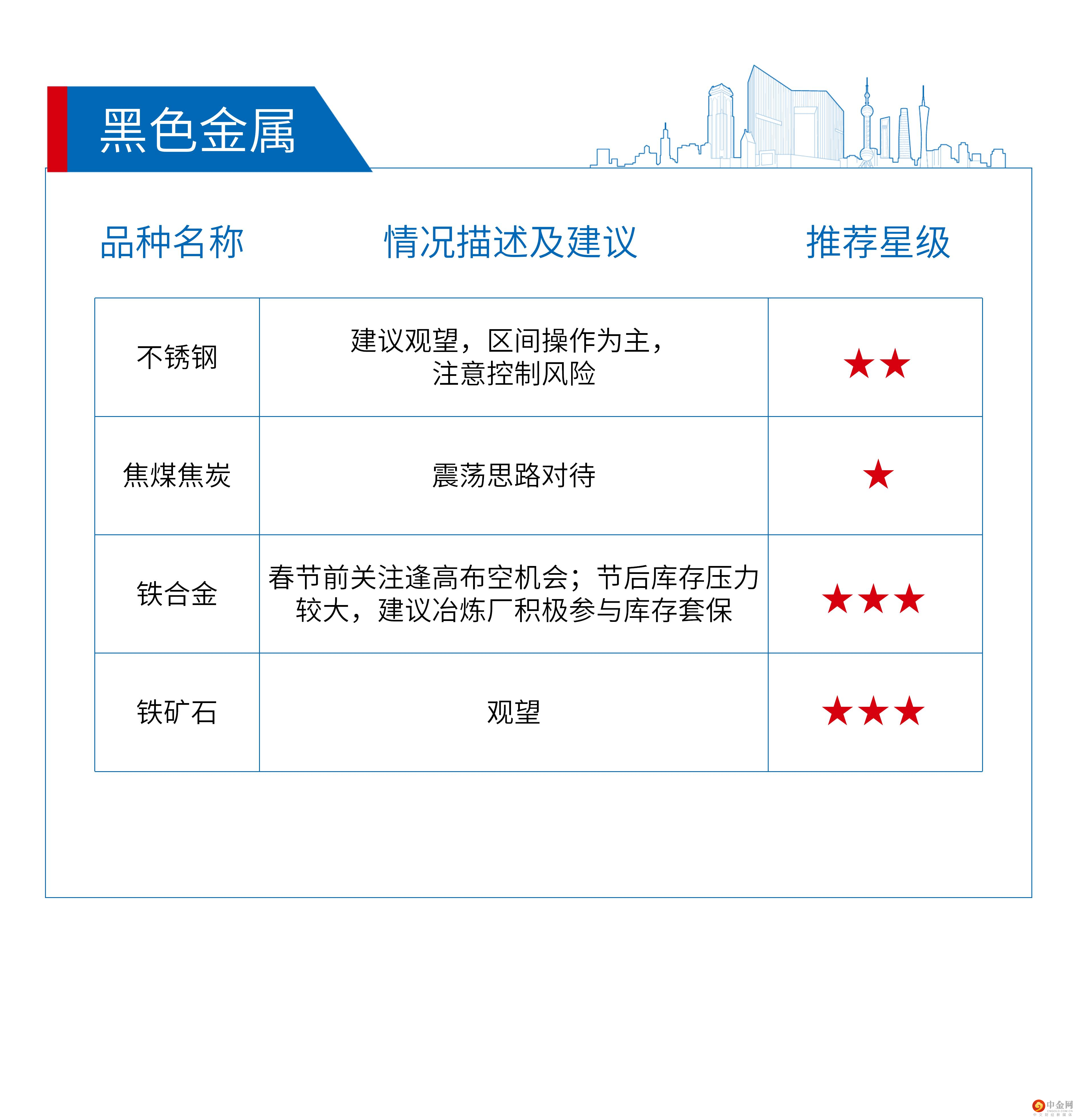 推荐星级说明