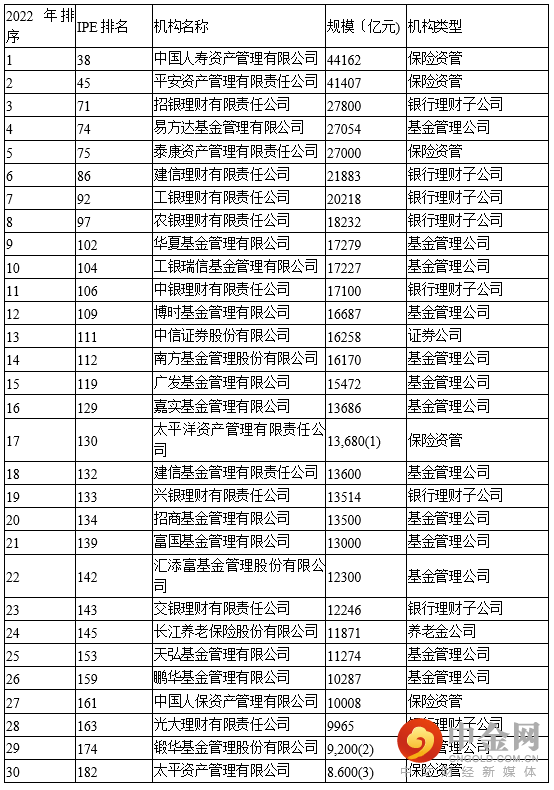 作为对比,我国虽然也有30家企业上榜前200名,且有8家机构进入前100名,但是规模与这些美国机构相比,仍有很大差距。排名最高的人寿资管规模仅4.4万亿元人民币,不及前十名榜单中排名最后的品浩公司的一半(见表2)。
