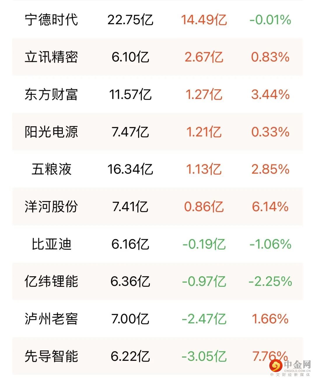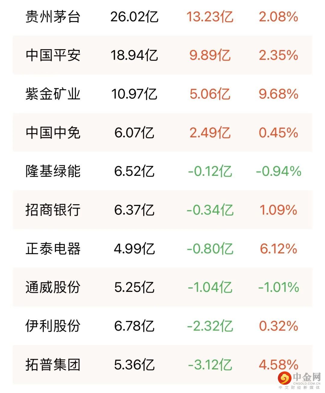 北向资金全天净买入77亿元。宁德时代、贵州茅台分居前两位,均获净买入超10亿,中国平安净买入接近10亿,三只个股净买入金额之和接近北向资金全部净买入金额的一半,此情况较为少见。净卖出方面,拓普集团净卖出居首,金额为3.12亿。