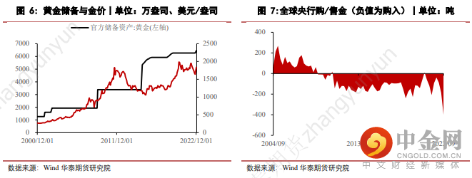 另一方面,全球央行累计购金在2022年Q3创出新高(399吨)。而根据世界黄金协会报告显示,2022年10月(当前数据滞后两个月),全球央行的总黄金储备净增加31吨。根据这一初步数据比对,当前全球央行黄金储备已提升至1974年11月(36,782吨)以来的最高水平。中国央行也在2022年11月增加黄金储备约29.2吨,这是自2019年9月以来的首次增长,而从过往经验来看,中国央行对于黄金的增持通常具有一定的持续性,并且对于黄金价格而言,是一个较为有效的前瞻指引。