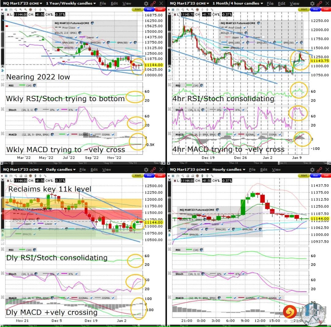 纳斯达克100指数期货(NQ)周线图/日线图/ 4小时图
