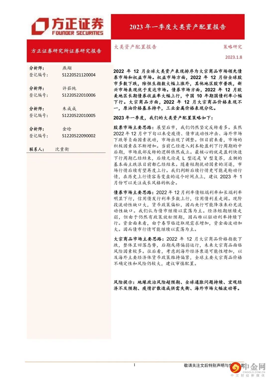 本文来自方正证券研究所于2023年1月9日发布的报告《2023年一季度大类资产配置报告》。