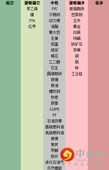 注:上图所有品种观点为主力合约的短期观点,具体以官网报告为准