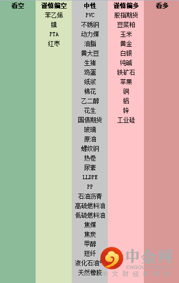 注:上图所有品种观点为主力合约的短期观点,具体以官网报告为准