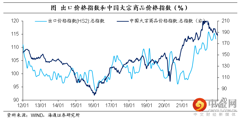 往前看,我国出口仍有下行压力。一方面,海外需求将继续降温,考虑到海外核心矛盾仍是通胀,将持续收紧货币政策,进一步压制需求;另一方面,在海外供给逐步恢复的情况下,我国出口份额或难再提升。而且,全球大宗商品价格和航运价格仍在逐步回落,出口价格的贡献也将持续走弱。